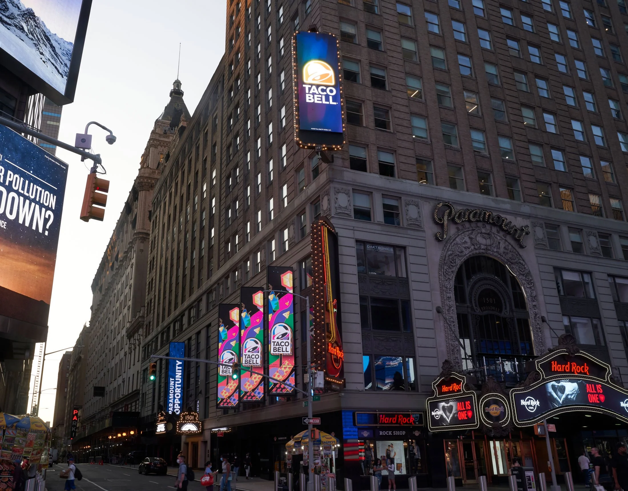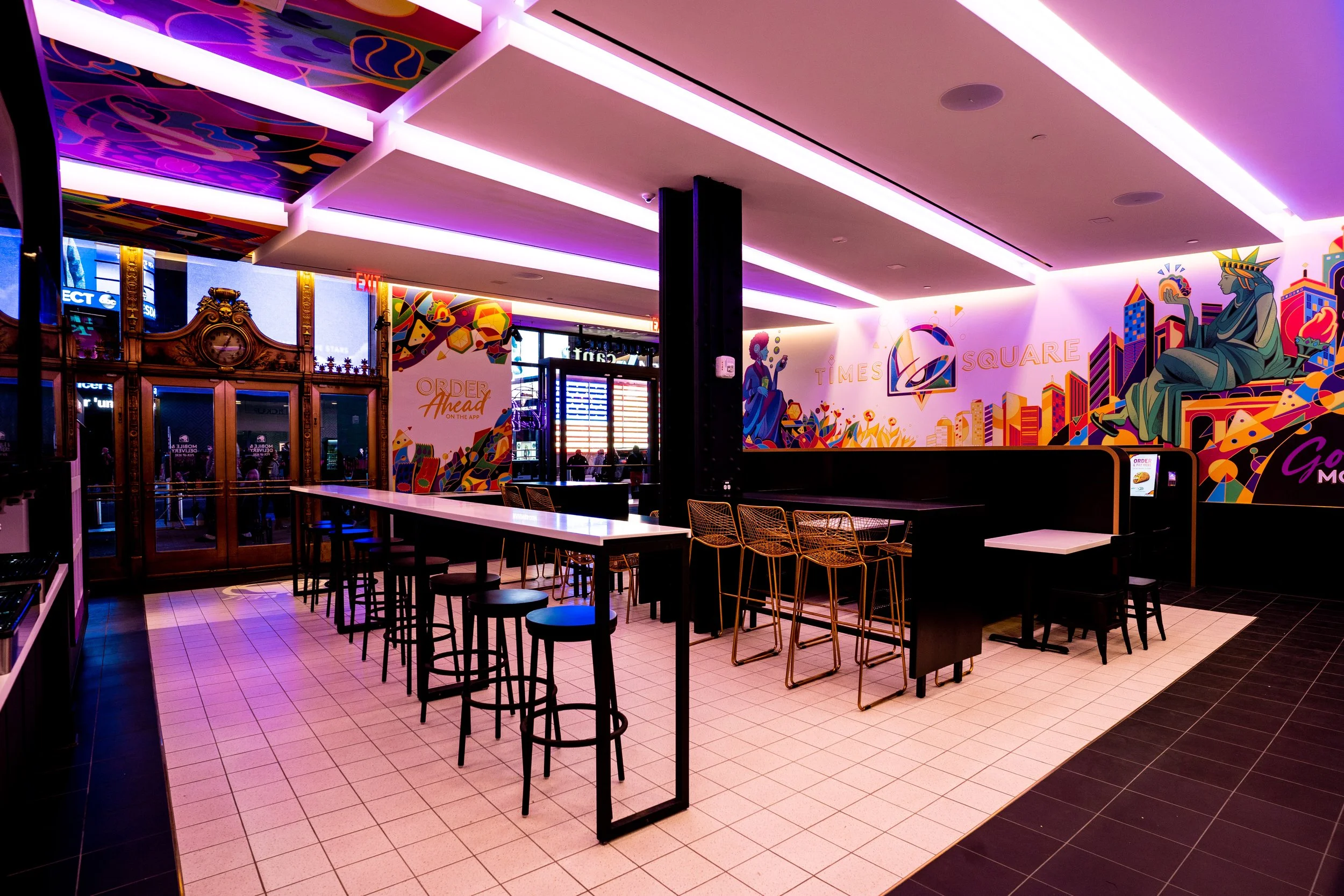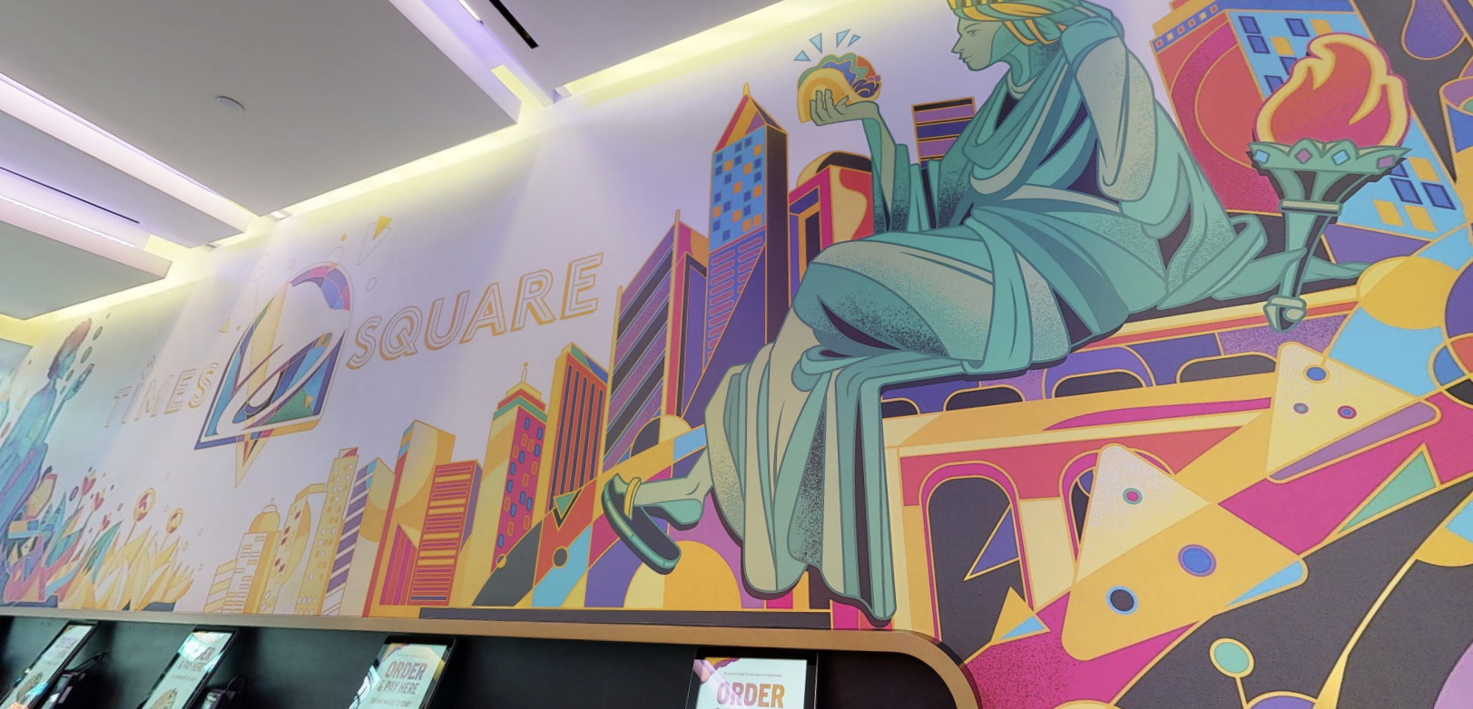 Inspired by the hustle and bustle that is truly only felt in the Big City, Taco Bell wanted to create a distinctive brand experience for it’s Cantina establishments. By using iconic NYC visual cues, morphed with the brand’s distinctive assets and mixed with an ever-flowing graphic flair led to the captivating environmental design only found in Times Square, NYC.